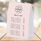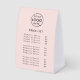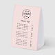 This pink paper table tent tabletop price list sign features a clean modern layout designed for easy customisation. The minimalist structure keeps your company logo, service titles and product costs clear and readable which makes it ideal for salons, boutiques, studios, cafes, market stalls, pop ups or reception desks. The template allows you to update the header, add your business name or tag line and list prices in a tidy organised format that customers can scan quickly. The styling works with almost any branding from bold and contemporary to soft and understated. This flexible template is perfect for businesses that update pricing often or need a polished display that looks professional in both digital and in person settings. A simple practical solution for presenting your services with clarity and style.