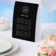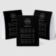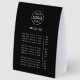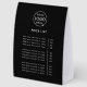 This black paper table tent tabletop price list sign features a clean modern layout designed for easy customisation. The minimalist structure keeps your company logo, service titles and product costs clear and readable which makes it ideal for salons, boutiques, studios, cafes, market stalls, pop ups or reception desks. The template allows you to update the header, add your business name or tag line and list prices in a tidy organised format that customers can scan quickly. The styling works with almost any branding from bold and contemporary to soft and understated. This flexible template is perfect for businesses that update pricing often or need a polished display that looks professional in both digital and in person settings. A simple practical solution for presenting your services with clarity and style.
