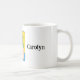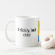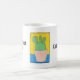 This mug states "Prickly, but cute" and is decorated with a hand drawn picture of a multi-lobed prickly pear cactus in a flower pot. You can personalise the mug with your name, and change the words if you wish. The background is yellow and blue, the pot is pinky beige and the cactus is very green with red spikes. It is an original drawing and only available from The Art of Being Beth.