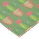 Tablecloth print features an original marker illustration of a prickly potted cactus plant, printed on a green background.