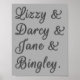 'Lizzy & Darcy & Jane & Bingley' Pride and Prejudice couples on a grey background.