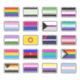 A vibrant collection of 20 stickers representing various LGBTQIA+ identities. Each sticker features a unique pride flag, including the Rainbow flag, Agender flag, Aromantic flag, Asexual flag, Bear flag, Bigender flag, Bisexual flag, Demisexual flag, Gay Men flag, Genderfluid flag, Genderqueer flag, Intersex flag, Leather flag, Lesbian flag, Non-binary flag, Pansexual flag, Polyamory flag, Polysexual flag, Progressive flag, and Transgender flag. Express your pride, show support, and celebrate the beautiful spectrum of identities with these high-quality stickers.