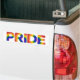 Celebrate your LGBTQ pride with the word "PRIDE" in bold rainbow coloured letters on a white background. Each letter contains pieces of red, orange, yellow, green, blue, and violet nested rings.