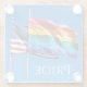 A bright drink coaster featuring a billowing rainbow Pride flag along with an American flag, set against a perfect blue sky. Celebrating a welcoming, diverse America. Photographed at Cherry Grove on Fire Island. Part of the Pride Collection.