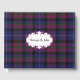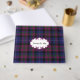 Plaid wedding guest book done in the classic regency blue, plum, green, black and white Pride of Scotland tartan plaid pattern. A white decorative oval text area, on the front of the book, has custom text ready to personalise for your wedding.