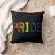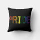 Gay pride themed typography design features PRIDE letters in rainbow scan pattern