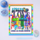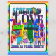 Spread Love Not Hate Poster for Pride Month. Graphics include hearts, rainbows, peace sign.