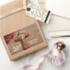 A wooden rosary crucifix is seen next to a beautiful red rose. Handsome gift, souvenir, giveaway or party essential to celebrate with a priest on his 20th Anniversary of Ordination. Personalise the name on this item.