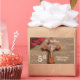 A wooden rosary crucifix is seen next to a beautiful red rose. Handsome gift, souvenir, giveaway or party essential to celebrate with a priest on his 5th Anniversary of Ordination. Customise the name on these.