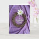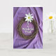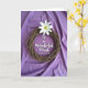 Designed with a rustic circular wreath made of interwoven natural twigs, this card sets an earthy focal point against softly draped lavender fabric. Near the top of the wreath sits a single white flower, its smooth petals opening to a pale green centre with tiny yellow stamens, like a gentle nod of affection. The lighting is soft and diffuse, creating mild shadows in the folds that make the background feel calm and intimate, as if meant to be held close. Inside the wreath’s open centre, the message “To a Wonderful Priest Happy Easter” appears in elegant white lettering, centred and easy to read. The white text echoes the flower above, tying the design together with a quiet, caring tone. Natural textures contrast nicely—the rough twigs, the silky bloom, and the flowing fabric—adding a tender, thoughtful mood 🌷. A small sense of closeness comes through in how the bloom leans towards the wreath, like a gentle embrace 🐇. The lavender backdrop shows soft waves and folds with subtle shadowing behind the twig circle.