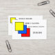 Business card featuring a Mondrian inspired design in primary colors. You can customize the squares by scaling, rotating and much more. And you can choose your own background color!