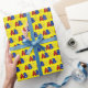 Wrapping paper features an original education-themed marker illustration of an ABC in fun primary colours, printed on a yellow background. Great for your favourite teacher!