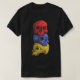 I give wanted to give this a 4 instead of a 5 because these Basic DARK T0shirts run unexpectedly SLIM or Narrow. Which is great if you do not have a potbelly, but I have a paunch. It isn't the shirt's fault that I've got a beer belly. The design and shirt itself is a quality cotton shirt. The color is more of a deep purple, but still a very pretty color. The Basic DARK T-shirts run a bit SLIMMER than the Basic Ts. The neck is a fraction narrower (or seems to be narrower) also. I'm a paunchy middle-aged woman and my neck is 12 inches (31cm) thick and the neckline fell about the same as in the photo of the man, and I had the desire to tug it a bit. So if you're a thick necked man or like loose shirts, be aware these are slimmer shirts. Once I get rid of my lockdown paunch it'll look great. The shirt washed well in cold water with no apparent bleeding. We don't have a dryer, so it hung dry. Did not shrink. Love the colors and the design. The design looks smaller on my shirt than it does on the model on-line. But still, it looks good on the shirt. The printing looks as it does on the model, just the size seems fractionally smaller. Washed garment in cold water, hung dry and design appeared unaffected.