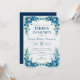 Invite your family to a Catholic First Holy Communion with this cute invitation with blue flowers. Perfect for a religious First Communion celebration.