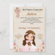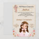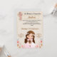 Una hermosa invitacion colores rosa, cafe y negro, con rosas y una cruz pensada para niñas creada con cariño para esa ocasion tan especial, con un hermoso mensaje.