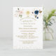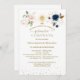 Invitación Primera Comunión de los gemelos dorados florales azules. Elegant card design featuring watercolour delicate pink and blue flowers, faux gold outlined roses, a faux gold shining cross, faux gold confetti, on a white background. Use Personalize tool to add your info. For matching items, please, visit my Elegant Baptism Christening Collection.