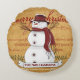 Primitive Country Snowman with Primitive Stars Round Cushion