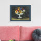 A bouquet of country sunflowers, daisies, and tulips is the focal point of this canvas art print. This image would add primitive folk art style to a kitchen, dining room, etc...The image is from an original watercolor painting with accents of coloured pencil.