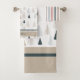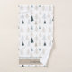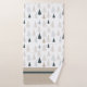 Personalise a guest towel with a name or other text and spruce up your rustic theme bathroom with this towel set printed with a pattern of primitive pine tree shapes. Choose the set or separates in the drop down menu. Created in earth tone colours of tan, light blue grey and dark slate grey on a white background and tan border and dark grey accents. See other coordinating items in this design collection on Zazzle.