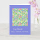 A pretty February Birthday Card for a Step Mother, with a pattern of deep pink, deep blue and yellow primroses, the February Birth Month Flower, from a handpainted design by Judy Adamson.
