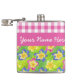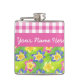 A pretty Hip Flask for you to personalise, with a pattern of pink, yellow and blue Primroses, teamed with matching pink band where you can add text if you wish; part of the Posh & Painterly 'Primroses' collection.