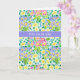 A pretty Mother's Day Card with 'Happy Mother's Day in Portuguese and a pattern of deep pink, deep blue and yellow primroses, from a handpainted design by Judy Adamson.