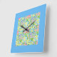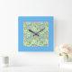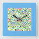 Primroses Square Wall Clock, Turquoise Border Clock