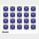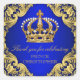 Prince baby shower favour stickers with royal blue and gold crown on a beautiful blue and gold swirl background. These prince baby shower stickers are easily customised with your text.
