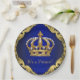 Prince baby shower paper plates with elegant royal blue and gold crown on a rich blue and gold swirl background. You can customise with the text of your choice in the font style you prefer. You can move the crown as needed.