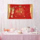 Prince Baby Shower Red Gold Drapes Brunette Boy Banner