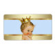 Baby blue and gold prince baby shower water bottle labels with adorable little prince wearing a gold crown on a beautiful blue and gold background. You can add text to personalise these adorable baby boy prince water bottle labels, and you can change the background colour to whatever you prefer. Not for use in ice buckets - these are not water proof.