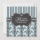 Elegant black damask and stripe design on a baby blue background makes a lovely design with a French feel that's fit for a little prince. This invitation lets guests know that the darling bundle of joy on the way is a sweet baby boy and celebrates his arrival in chic style.