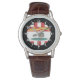The watch looks really great!  Very sharp and well done. The leather band is really nice, though for a man's watch I think it should be longer. Unfortunately, it isn't big enough for my husband's wrist but I will get a replacement because he is very excited to wear it!