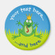 Prince frog cartoon with crown on green grass under blue sky. Two custom text fields on circle.