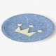 Artificial blue glitter plate with an image of a crown. Pink is also available.