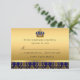 Royal Blue & Gold Baptism RSVP. Elegant regal jewel crown & gold damask. Customise with your own details. Please note all flat images! they do not have real jewels!