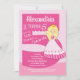 Cute girls 5th birthday invitation featuring a pretty blonde princess on a large pink number with pink and white polka dot background.