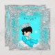 Princess Baby Shower Teal Blue Silver Brunette Invitation