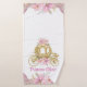 Princess bath towel with pretty gold floral carriage on a beautiful pink and gold swirl floral background. This princess towel is easily customised with a name or the text of your choice in the font style you prefer. You can also change the background colour on this pretty princess bath towel.