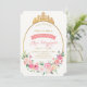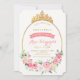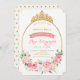 Your little princess will love this royal Baby Shower invitation. A gold foiled tiara sits atop a golden oval frame with pink garden woodland flowers and gold glitter.