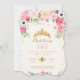 Celebrate your little princess with this charming Birthday Party invitation. A gold foiled tiara surrounded by a frame of pink garden woodland flowers and gold glitter.