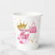 Princess birthday party paper cup for Christian events. Celebrate your child's annual salvation decision to follow Jesus. Partyware theme, "Princess Of The King" with pink princess shoes, gold crown, pink purse and cross necklace. Perfect for family or church events, VBS and Sunday school.