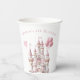 Cute, girly Princess birthday paper cups for your special princess. Watercolor, pink and white stone castle with pretty pink balloons.
