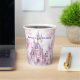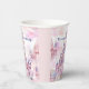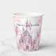 Beautiful watercolor image of a pink and purple, elegant, Princess birthday castle on paper cups.