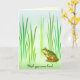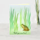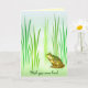 This friendship card features a small female green frog with a yellow belly sitting among the grasses at the pond. She seems lonely as if she is waiting for her Prince Charming to appear. Is she saying "Wish you were here"? More grasses decorate the inside. The text can be customised to suit your needs.