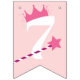 A whimsical kids birthday banner featuring princess crown with twinkling stars, a magical want and customisable age flag.
