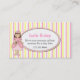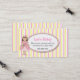 Sweet girl's play date calling card, done in a pink, yellow, and white striped pattern background. A white oval text area, in the middle, is decorated with a pink rim and cute country graphics, of a little girl Princess, holding a frog. Personalise the text for yourself, as a mummy card, or for your child. Great way to stay in touch with other moms and arrange play dates, birthday parties, and baby sitting co-ops.