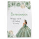 This quinceanera birthday gift bag features a beautiful princess in a sage green ball gown with floral arrangements. This is perfect for a quinceanera birthday party.
