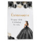 This quinceanera birthday gift bag features a beautiful princess in a black ball gown with floral arrangements. This is perfect for a quinceanera birthday party.