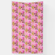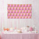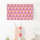 Illustration of an adorable baby girl dressed in pink, with hair in buns with pink bows and princess tiara. Surrounded by toys and with pink and gold balloons above with stars and moon banner. Cute gift for expecting parents, baby shower, gender reveal, or baby birthday gift.